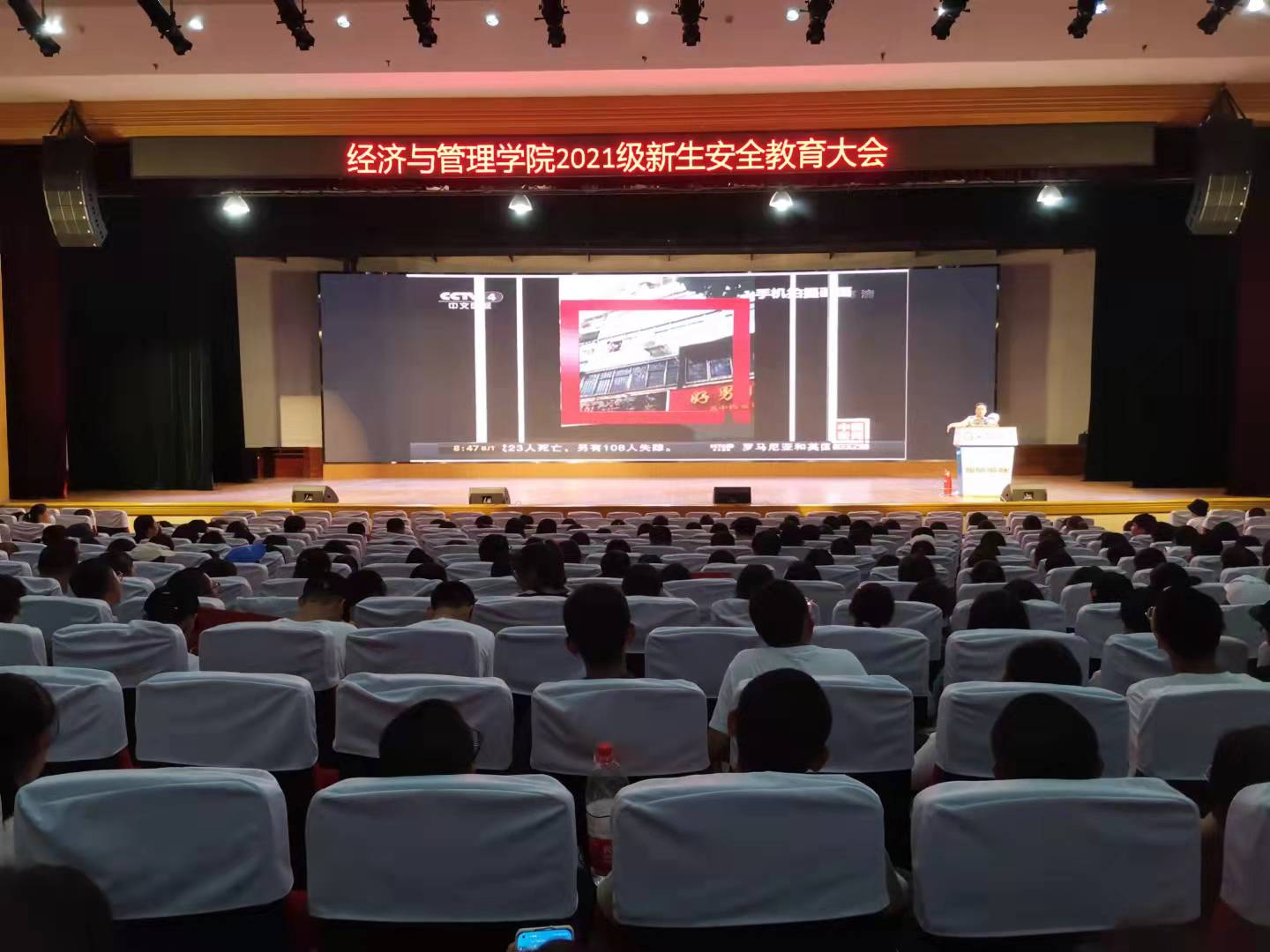 为提高增强增强消防安全意识,帮助新生尽快适应大学生活,9月23日晚经管学院在金盆岭校区五教大礼堂召开新生安全教育大会。学院全体新生,院党委副书记唐青,新生辅导员肖翠、王宝宝参加会议。
