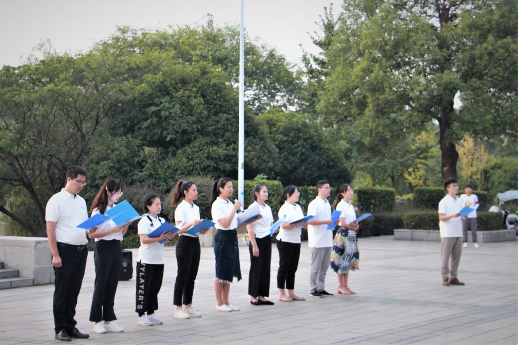9月27日早上7点,经管学院“奋斗百年路,启航新征程”师生朗诵红色经典故事主题教育活动暨升旗仪式在云塘校区图书馆前坪顺利举行。经管学院党委副书记唐青,全体学工办辅导员老师,全体入党积极分子,民兵连国旗班队员以及2020级全体班委干部参与了此次活动,仪式由戴逢哲主持。