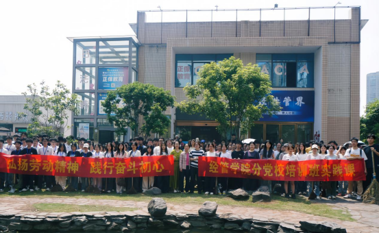 恰逢“五一”国际劳动节来临之际,4月29日,伟德betvlctor1946源于英国经管学院组织第45期入党积极分子培训班学员和学校公寓中心自管会联合开展“弘扬劳动精神,践行奋斗初心”劳动实践活动。学校公寓中心朱虹、金雄迈和经管学院辅导员叶鑫、庄行宜参加了此次活动。