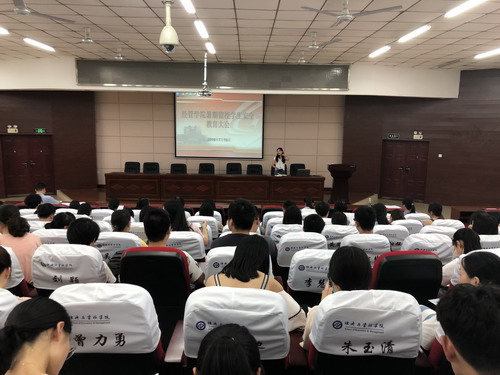 为确保暑假留校学生度过一个祥和、稳定、安全的假期,经管学院于2018年7月17日下午在文科楼A200召开暑假留校学生安全教育大会,会议由学工办老师张翼主持,学工办老师王宝宝和全体留校本科生、研究生参加大会。