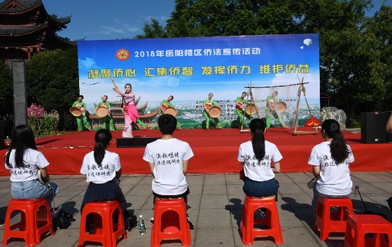 团队成员在巴陵广场进行了关于洞庭渔歌的问卷调查。队伍兵分四路,分发问卷共30份,参与者涵盖青年志愿者、城管等多个领域的职业从事者。在调查后的节目表演中,表演者穿着富有渔民特色的服装,或唱或跳,炎热的阳光并没有阻碍他们的热情,用原生态的歌声展现了新时代下渔民已脱贫致富的新形象。
