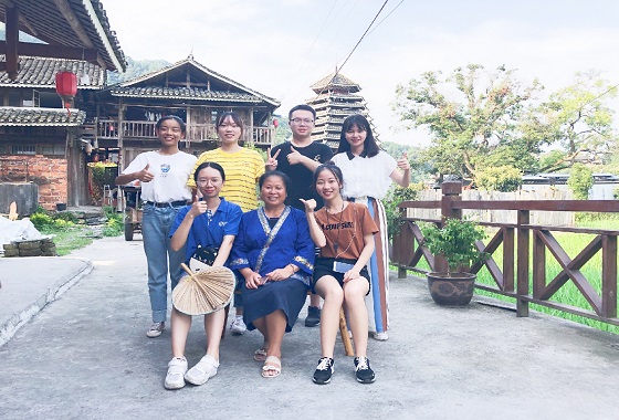 下午,小组成员启程前往具有“丝路女儿国”之称的岩脚古寨,拜访已经取得联系的残疾人士吴详爱阿姨,了解她现在的生活情况,并询问道如果有机会能够提供她一个就业,且同时对她进行制作雕花蜜饯技巧的培训,是否愿意从事雕花蜜饯这个行业等相关问题。在与吴阿姨的交谈过程中,成员们发现她是一个十分有想法而且极具侗族女子风情的热心阿姨,而且对雕花蜜饯有着浓厚的兴趣,也充分收集到了相关信息。交谈完毕后,吴阿姨还带领同学们体验了一把悠悠古寨情。踏着极具韵味的青石板路,观赏着侗寨风雨桥、鼓楼以及民宅屋。