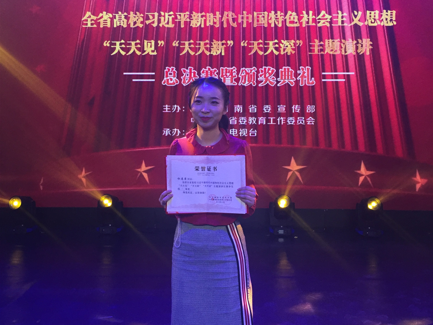 11月23日下午,湖南省高校习近平新时代中国特色社会主义思想“天天见”“天天新”“天天深”主题演讲比赛决赛在湖南教育电视台隆重举行,经管学院财务管理1603班杜逢清同学表现突出喜获学生组一等奖。