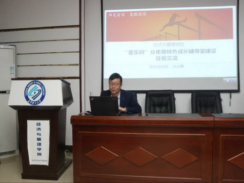 11月26日晚,经管学院于文科楼E区501室开展了与湖南省兄弟院校间的成长辅导室项目建设学习与交流活动。省特色成长辅导室项目建设负责人、学院党委副书记涂道勇、辅导员李丽兰、王宝宝等32名老师参与了本次活动。
