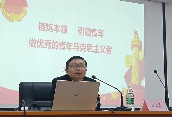 在本次培训课中,涂道勇以“锻炼本领,引领青年,做优秀的青年马克思主义者”为主题,讲授了全国教育大会精神,全国高校思想政治工作会议主要精神,以及习近平总书记五四北大讲话主要精神,当代青年如何贯彻总书记讲话精神等内容。在课上涂道勇特别强调了学生干部应该有的作风以及团委学生会各部门工作中应注意的问题。涂道勇还带领学员们介绍了推优入党的细则。青马班学员认真学习了涂道勇的授课内容,并做了详细的笔记。