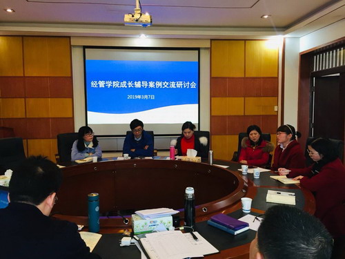 2019年3月7日下午,经管学院于文科楼D506会议室开展了成长辅导案例交流研讨会。学院党委书记王宏、副书记涂道勇、班主任代表、全体辅导员参与了本次了研讨。