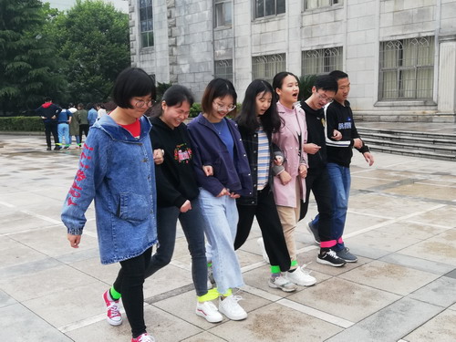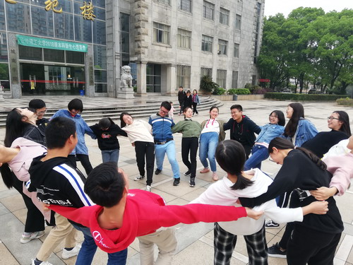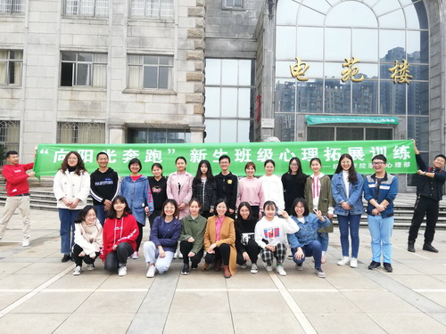 为培养学生团队精神,提升合作、信任、沟通与抗挫折能力,4月13日上午, 2018级新生班级心理拓展训练于金盆岭校区电苑楼前坪举行。活动由院心理辅导员李丽兰老师担任领导者,朋辈心理部及18级班级心理委员参与本次训练活动。