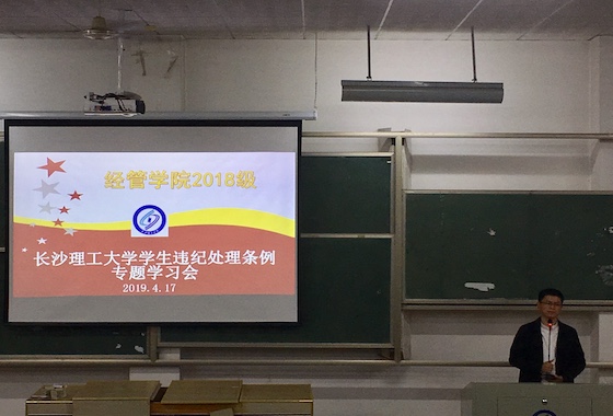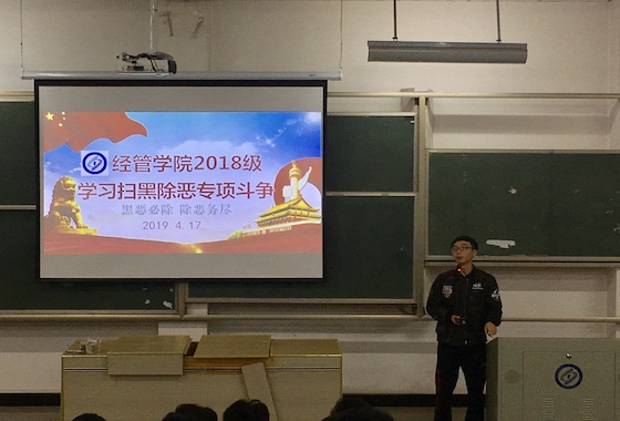 4月17日晚,经管学院18级新生扫黑除恶专项斗争暨学生违纪处理条例专项学习会于金盆岭校区12教600顺利召开。18级辅导员何涛、刘晨阳及18级各班班委参加了此次会议。