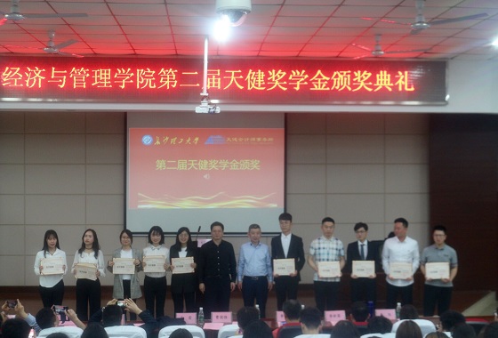 5月17日晚,经管学院第二届天健奖学金颁奖典礼在云塘校区文科楼A200隆重举行。天健会计师事务所副总裁、湖南分所总经理、管理合伙人曹国强,天健会计师事务所高级合伙人、湖南分所总经理助理李健,天健会计师事务所高级合伙人、湖南分所总经理助理李新葵,天健会计师事务所湖南分所行政人事部高级经理盛旭,经济与管理学院党委书记王宏,党委副书记涂道勇,副院长谢朝华和副院长王治出席颁奖典礼。财会专业学生代表参与本次典礼,仪式由李子甜主持。
