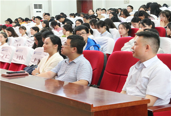 第二个环节为考研经验分享环节,由院学工办主任李丽兰主持。四位成功考取硕士研究生的2015级毕业生代表曹童、杨俊宇、杨素、谢力依次上台分享经验与心得,涵盖了保研、考研、跨专业考研、专硕、学硕等各个方面。他们结合个人考研经历,从择校选择、学习计划安排、考研心态、资源推荐等方面畅谈了心得与建议,可谓是干货满满。