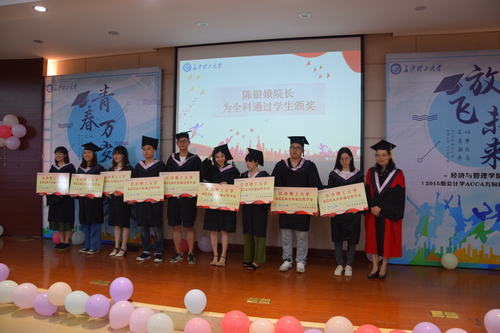 本次ACCA方向班毕业典礼,是对学院创新人才培养模式,会计领域行业精英培养效果的一次检验与展示。据悉,本届ACCA班学生为伟德betvlctor1946源于英国第二届毕业生,本届毕业生经过4年培养取得了骄人的成绩。全班有9人全科通过ACCA全球14门考试,ACCA 课程F阶段全班通过率74%,湖南省名列第一。有2人被评委湖南省优秀毕业生,6人被评为校级优秀毕业生,毕业时全班已有8名学生光荣加入中国共产党。有9人荣获国家级学科竞赛奖励,32人在省级各类竞赛中获奖。全班四级通过率达到100%,六级通过率达到80%,研究生录取率达到30%,就业的学生几乎都去了世界五百强企业、大型会计师事务所等质量较高的单位。