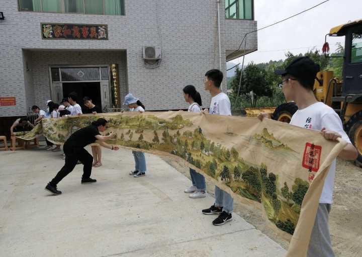 从长沙驱车来到白龙村,蓝天白云,山清水秀的美景一扫团队长途驱车的疲惫。合作社的负责人周总详细介绍了村里的发展近况,合作社主要以猕猴桃和红薯粉为主要产品,主打纯天然有机产品。合作社后的养植基地处处都是错落有致的猕猴桃架,上面挂满了小巧可爱的红心猕猴桃,让人忍不住驻足观赏。猕猴桃架旁长着一些紫色的葫芦花,与猕猴桃相映成趣,基地里面农民正在辛勤地劳作。周总介绍说,基地都是采用有机肥料和物理方法除虫,以保证猕猴桃的品质。此外,附近还有石斑蛙养殖基地和沃柑种植基地。午饭后,周总带领团队成员来到合作社后的山上游览,溪水潺潺,美不胜收,白龙村未来的发展思路也是以旅游带动发展,实现“猕猴桃里话丰年,听取蛙声一片“的意境。周总的爱人向大家展示了一幅她耗费五年绣的长达二十米的清明上河图,五年磨一绣的耐心与毅力令人感动与敬佩,一件小事做到极致,也不失为一种伟大。