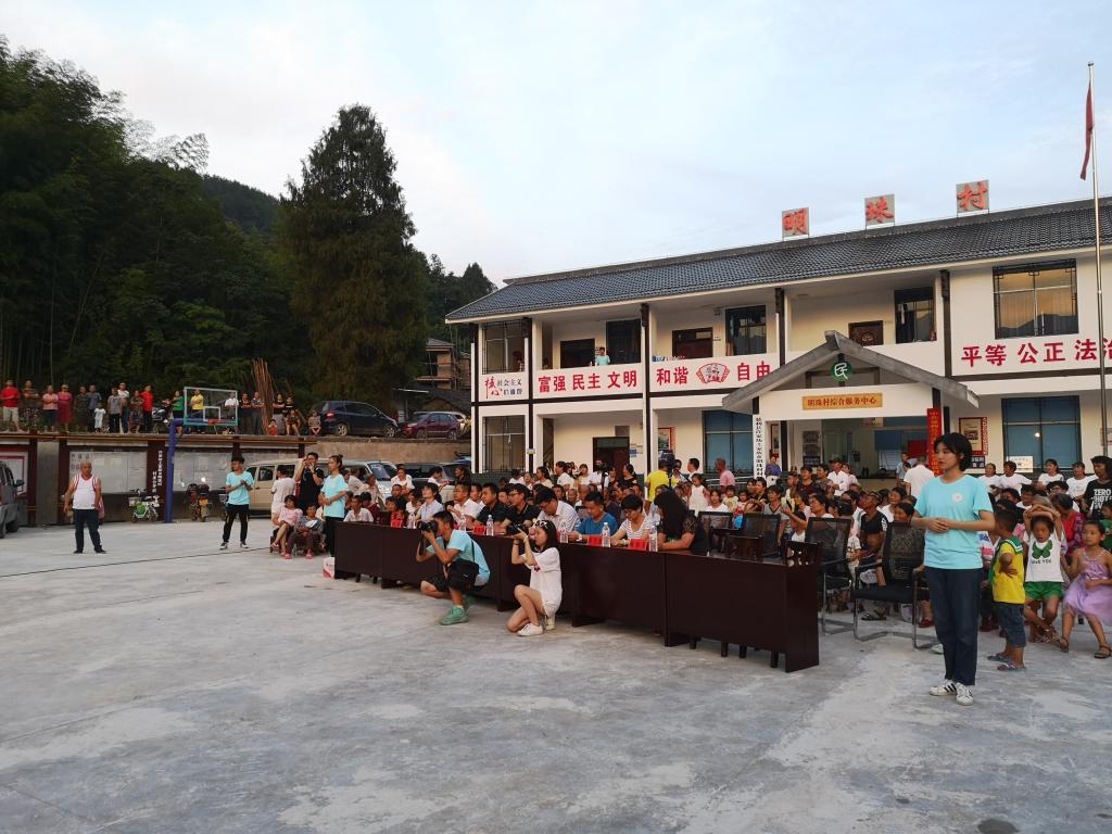 在进行推普脱贫工作的同时,团队成员不忘丰富村民业余生活。7月16日,明珠义务支教团携手湖南师范大学以及湖南农业大学的支教团队在明珠村共同组织了明珠爱心篮球赛以及明珠爱心文艺汇演,给平日宁静的村庄带来了许多欢声笑语,也为扶贫工作提供了更多的精神力量。期间,慈利县团委书记也对明珠支教团的推普扶贫工作表示赞赏和支持,他说到:“大学生的到来也让村子更加充满生机与活力。各位加油干,放心大胆地去做”。