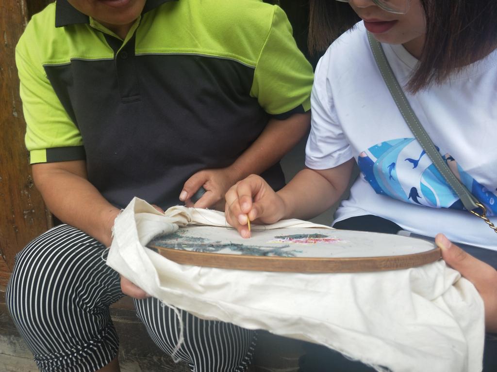 为了更好地传承与发展苗家插绣,调研团一行来到了长沙市沙坪湘绣文化广场,借鉴吸收湘绣发展的优秀经验。从绣艺来看,湘绣从家庭式传授到举办培训班,重视画艺及绣艺人才培养;从绣面来看,结合现代艺术,融汇现代风格,但又不失文化底蕴;从销售来看,紧跟“互联网+”发展潮流,形成了完整的现代化营销体系。沙坪湘绣文化广场在政府支持下建立,形成了湘绣推广,文化传承,经济效益三者的良性循环。