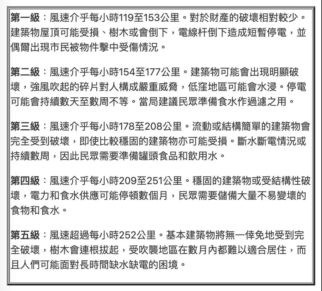 美国国家飓风中心NHC飓风级别划分