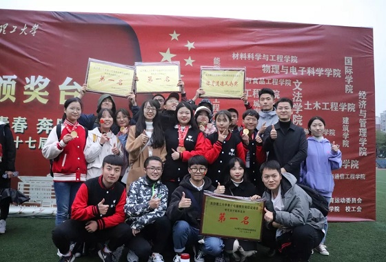 开幕式结束后,比赛正式开始,整个赛场顿时沸腾起来。此次运动会期间,连绵的秋雨带来了不小的阻碍,但风雨并没有阻挡运动健儿们奋力拼搏,也没有浇灭工作人员们的热情和观众们加油呐喊的激情。径赛场上,运动员们一个个如利箭般飞驰在跑道上,无惧雨水和寒风,径直冲向终点。比赛紧张而有序地依次进行着,运动员们都奋力拼搏,雨中竭力赛出最好水平,坚持践行体育精神。而观众席上的观众们也是拼尽全力为运动员们加油助威,一声声呐喊为他们注入无穷动力。志愿者和学生干部穿梭于各个比赛场地,为运动员提供细致入微的后勤服务,协助维护着赛场的秩序。裁判员们亦丝毫不惧风雨,身着雨衣坚守在自己的岗位,保证比赛的公平公正。在女子200米、女子1000米、男子跳高、男子跳远等项目中,经管学院屡创佳绩,田赛和径赛项目都尽显经管人的风采与实力。4×400米接力赛与4×100米接力赛,男子组与女子组更是均以显著优势夺得第一名。在最激动人心的万米接力项目上,经管学院代表队也是表现惊艳,院旗随风在赛道上飘扬,一声声震耳的“经管加油”伴着有力的鼓声回荡在比赛场中。本次运动会,经管学院再次刷新成绩,最终摘得女子团体总分第一名,男子团体总分第一名,获总成绩第一名及体育道德风尚奖。同时,教工组也以97分的好成绩再次夺得全校第三名。
