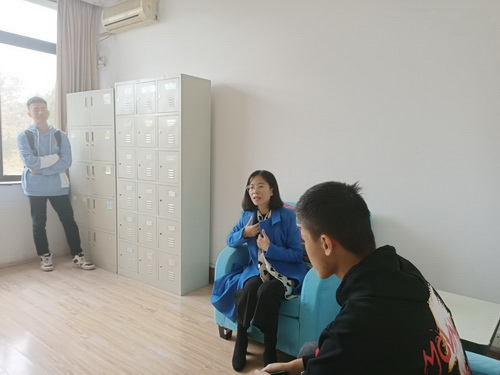 首先,由李丽兰为同学们普及心理咨询的相关知识,包括心理咨询是什么、心理咨询能做什么、心理咨询的方式与原则等,澄清了大众学生对心理咨询的误区。随后,李老师带领大家逐个参观了预约等候室、个体心理咨询室、团体心理咨询室、心理测验室等房间,并就其功能定位进行说明。为了让大家更直观感受到心理咨询的魅力,李丽兰老师现场模拟了个体心理咨询的场景,从细微之处让大家感受到了心理咨询的专业性与魅力。李老师结合案例,强调心理咨询室是一个神奇的地方,必要的心理求助是强者的行为。她希望各班心理委员在班级中多普及心理健康知识,提高每个学生的心理求助意识。参观结束后,同学们提出疑问,李老师进行了一一解答。