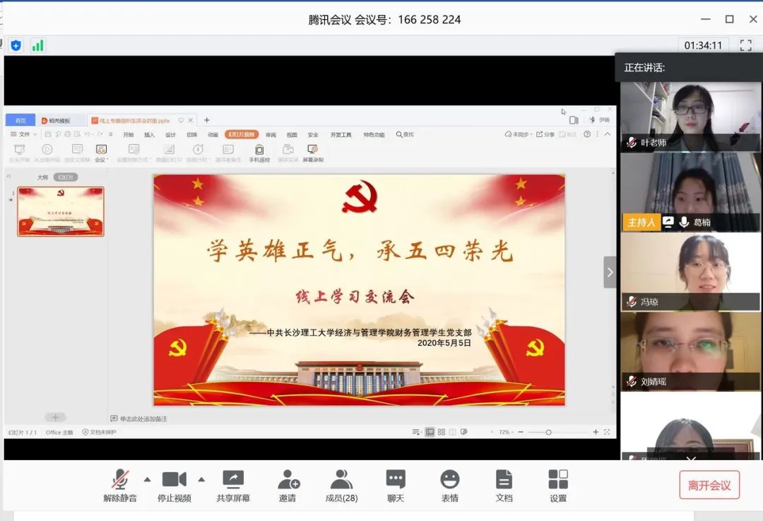 为激励和引领广大青年党员进一步传承五四精神,勇担青年使命,经济与管理学院各学生党支部积极开展了以“学英雄正气,承五四荣光”为主题的党支部学习交流会。广大学生党员充分利用“学习强国”开展自主学习,观看了纪录片《家国荣光》,重温了习近平总书记在纪念五四运动100周年大会上的讲话,各支部利用线上平台,通过导读、研讨等多种形式开展了学习交流会。