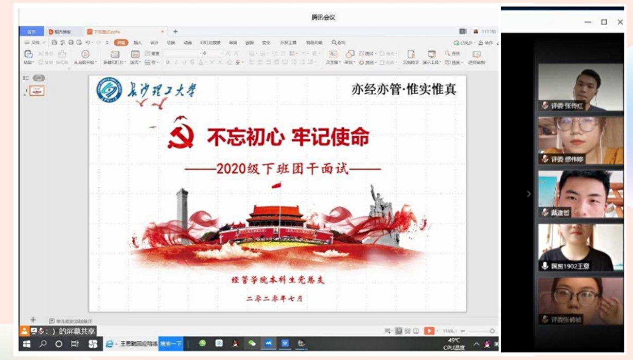 2020年7月4日下午,经管学院举行了2020级新生下班团干选拔会议。经过前期宣传和自我推荐,共有26名19级学生参加竞选。学院团委书记何涛、党建辅导员叶鑫、19级辅导员段懿珊、20级辅导员戴逢哲参加本次会议,18级全体下班党员及党建工作人员参与观摩与监督。