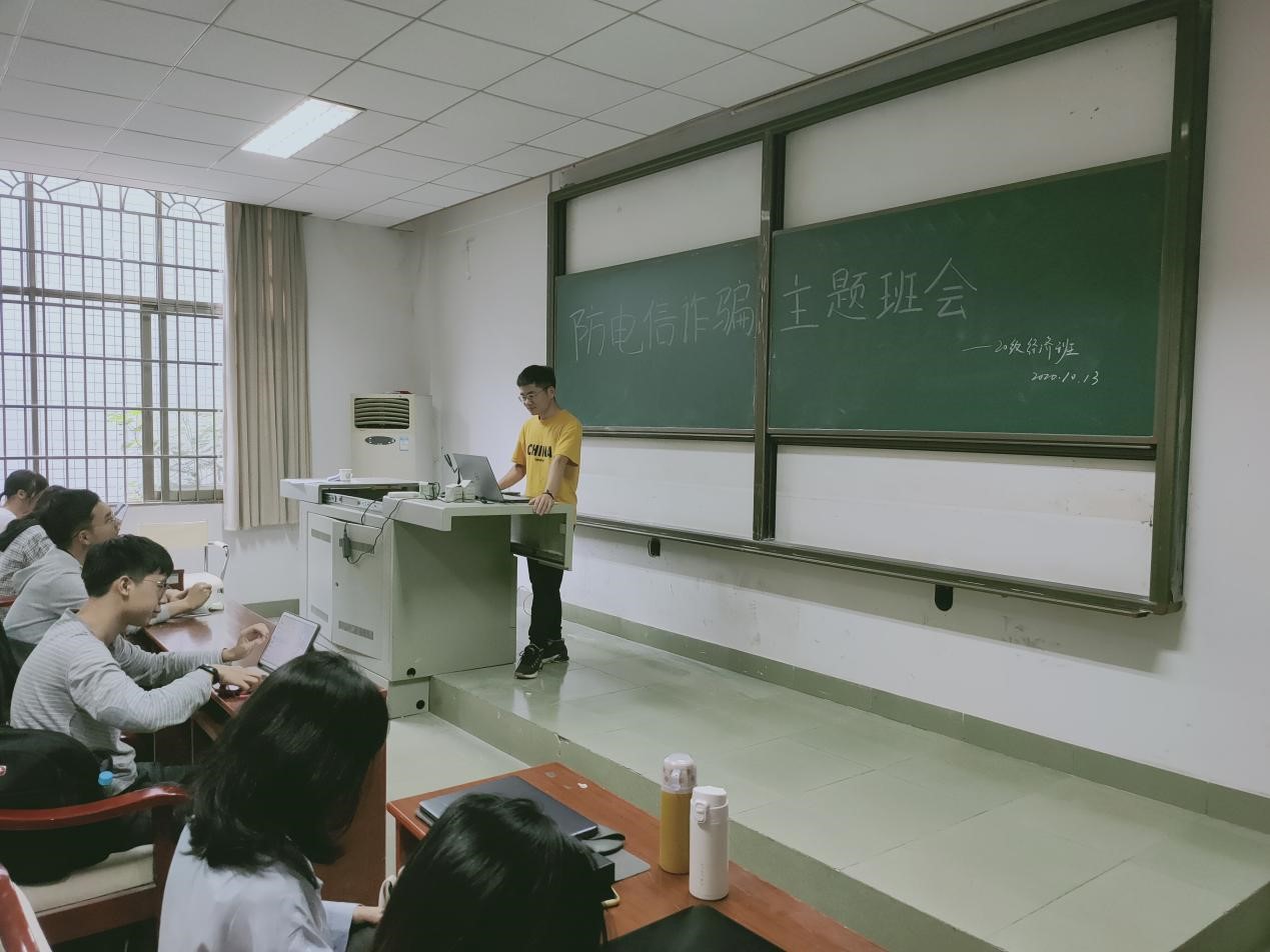 为切实提高广大学生的防范意识,充分保障学生的人身财产安全,经管学院本科生、研究生各班级于10月14日组织开展了“防电信诈骗”安全教育主题班会。