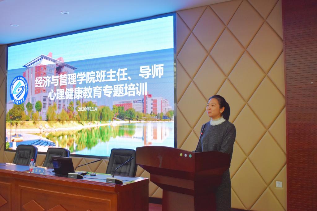 11月17日下午,经管学院在文科楼A200召开班主任、导师心理健康教育专题培训,本次培训的主讲老师是学校心理中心副主任授龚勋,参加培训的还有院党委书记王宏、党委副书记唐青、经管学院本科生班主任及研究生导师。
