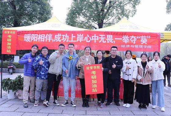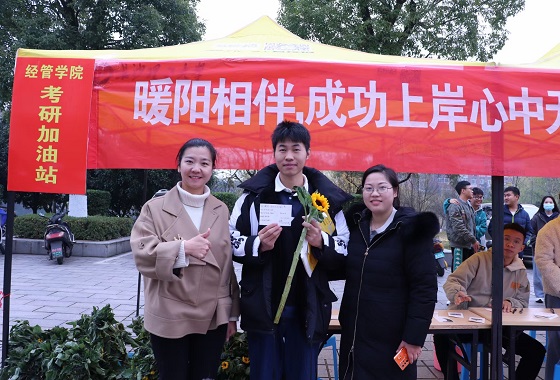 2020年考研在即,12月23日中午,经管学院党委副书记唐青、17级辅导员肖翠,班主任老师以及低年级学生们在云塘校区图书馆前坪设立“经管学院考研加油站”,为经管考研学子缓解考前焦虑,加油鼓劲,勇战夺“葵”。