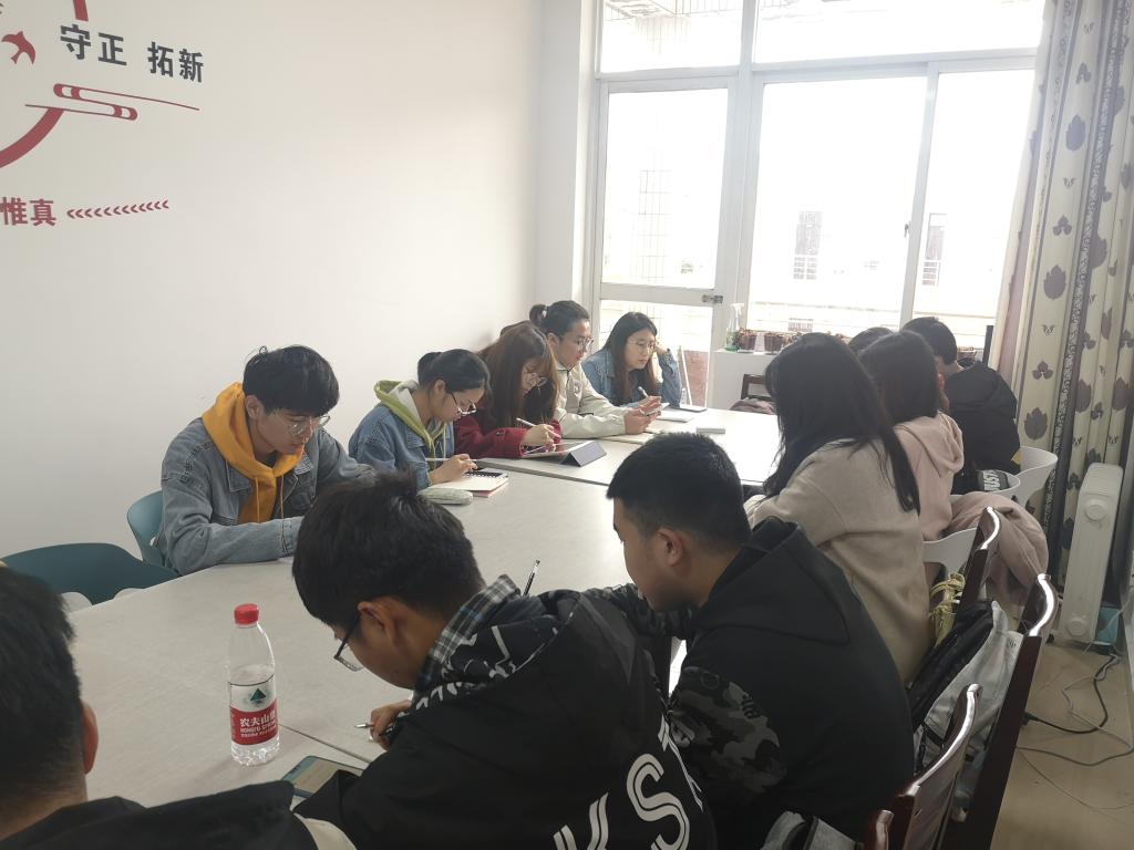 会议伊始,何涛对于本学期主要团委活动安排进行介绍,明确了各项活动的时间段以及主要的主题活动内容,强调各项活动的规范性以及工作材料档案整理的重要性。随后,何涛又对本学期第一次全体学生例会暨表彰大会做主要工作安排,并着重提及了“守门员”与“信息员”的意识问题。最后,何涛提及了有关“双代会”的相关事宜,并要求参会成员讨论各部门副部的去留意向以及能力评估。