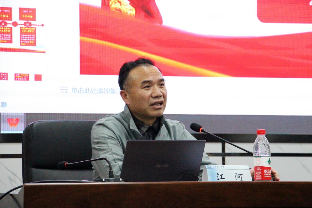 4月13日晚,经管学院第37期入党积极分子培训班第二次理论课顺利开展。设计艺术学院党委书记江河讲授了《党的百年历程》专题党课。经管学院党委副书记唐青,20级辅导员戴逢哲及培训班全体学员参加了此次党课。