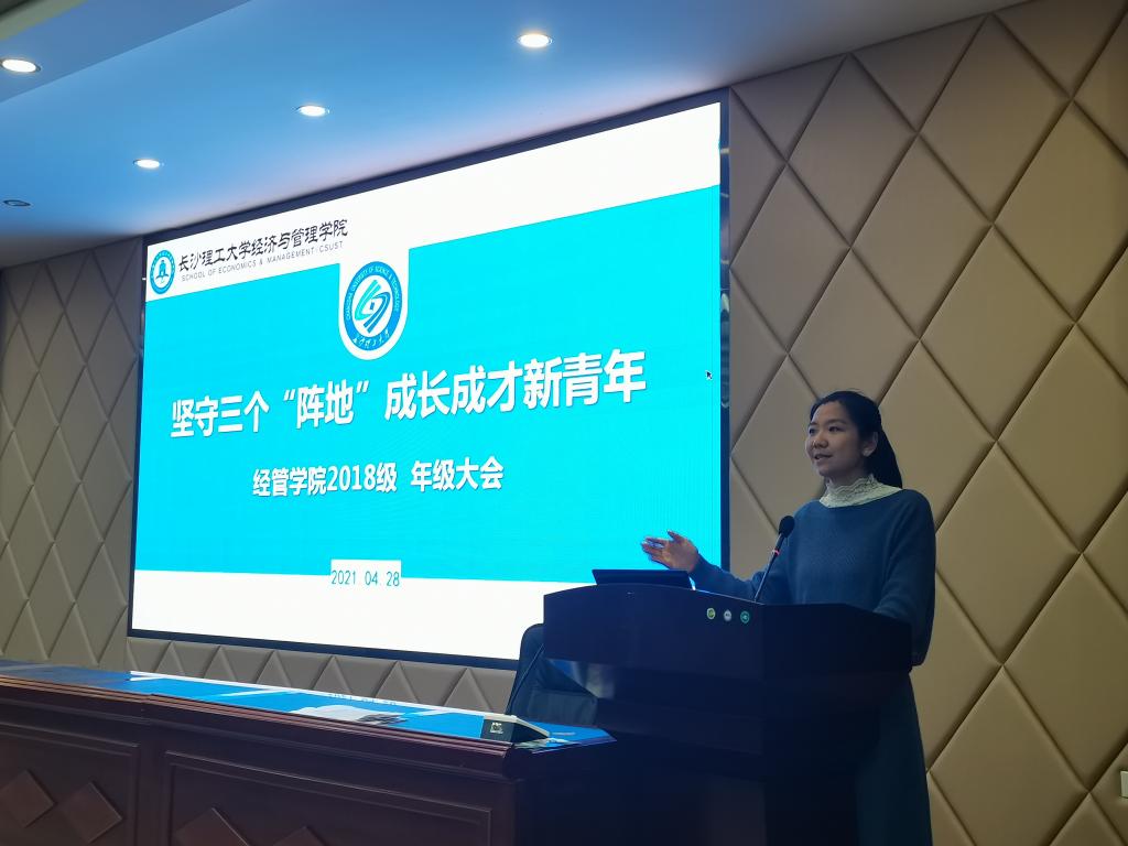 4月28日晚,经管学院2018级年级大会分批次在云塘校区文科楼A200顺利召开。经管学院党委副书记唐青,2018级辅导员何涛、叶鑫以及2018级全体学生参加了本次会议。会议以“坚守三个阵地,成长成才新青年”为主题,从“思想阵地、课堂阵地、宿舍阵地、其他方面”四个角度,向学生们提出了新时代新青年的应有觉悟与要求。