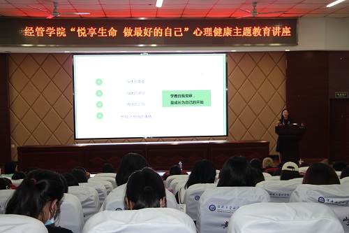 为进一步开展生命教育,帮助学生完善自我,6月2日晚,经管学院“悦享生命,做最好的自己”心理健康主题教育讲座在云塘校区文科楼A200报告厅举行。本次讲座的主讲嘉宾为湘潭大学程燕副教授,由心理辅导员李丽兰主持,学院285名自愿报名的学生现场参与了讲座。