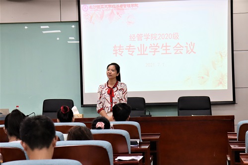 7月1日晚,经管学院2020级转专业学生会议于金盆岭校区7教212顺利召开。经管学院党委副书记唐青、副院长谢朝华、教务办主任李烽、2020级辅导员李丽兰与戴逢哲及2020级转专业学生参加了本次会议。