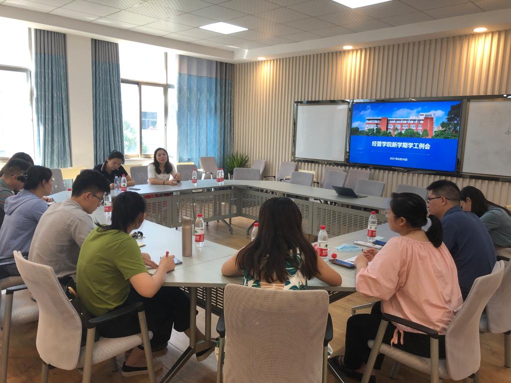 为切实做好新学期学生工作,8月30日上午,经管学院在金盆岭校区7教会议室召开新学期学生工作例会,院党委书记丁丹出席,学工办全体辅导员参加。会议由院党委副书记唐青主持。
