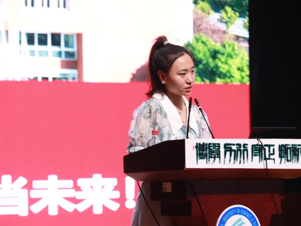 紧接着,2019级优秀学生代表谭进进行了发言,分享其在学习、工作、竞赛等方面的经验,号召大家做一个出类拔萃、全面发展的大学生。