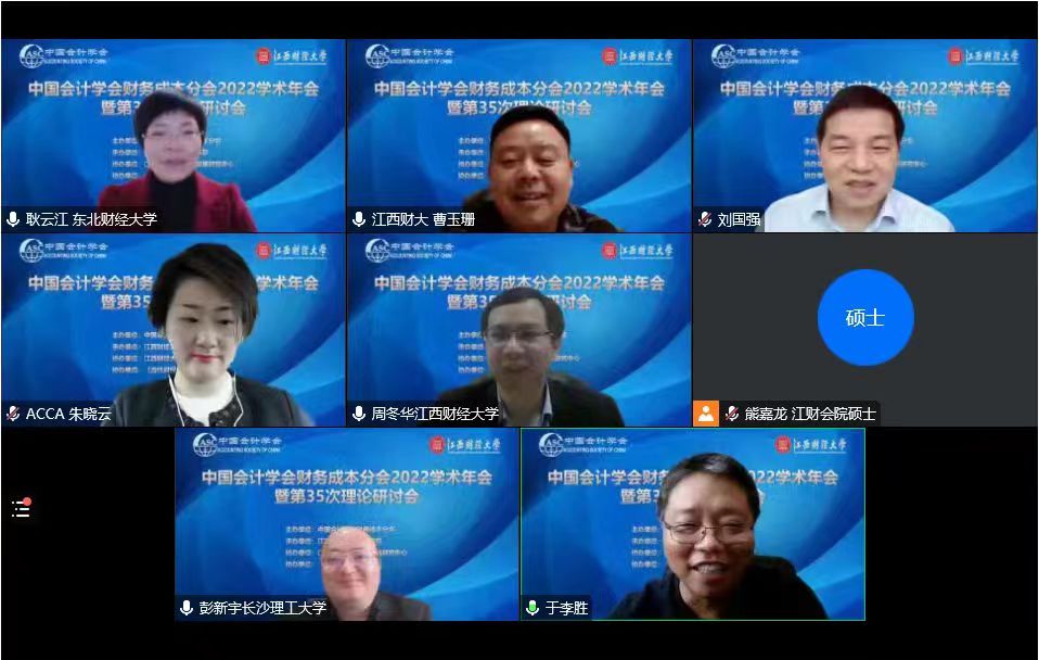 2022年11月26日-27日,由中国会计学会财务成本分会主办、江西财经大学会计学院承办、江西财经大学会计发展研究中心、《当代财经》杂志社协办的中国会计学会财务成本分会2022学术年会暨第35次理论研讨会在江西财经大学线上举行。复旦大学吕长江教授、对外经济贸易大学陈德球教授、美国东北大学John (Jianqiu) Bai副教授、上海财经大学讲席教授何贤杰在本次研讨会上分别作了主旨报告。本次研讨会分设公司治理、环境保护与社会责任、企业数字化转型、企业创新、技术与财务等多个分会场,来自全国各高校近千名财会专业师生线上聆听了报告。我院博士研究生邱妍受邀在企业数字化转型分论坛汇报了她与导师王治教授合作撰写的学术论文《数字化转型能够降低企业资本成本吗?》。