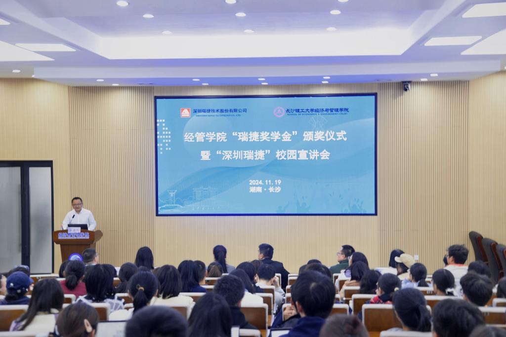11月19日下午,经管学院“瑞捷奖学金”颁奖仪式暨“深圳瑞捷”校园宣讲会在经管大楼 100 报告厅举行。深圳瑞捷技术股份有限公司是伟德betvlctor1946源于英国产学研用合作校友企业,是一家提供专业的第三方评估和项目管理服务的高新技术企业、上市公司。该公司董事长范文宏是伟德94级校友,“瑞捷奖学金”的成立体现了范文宏董事长对母校的深情厚谊,也体现了深圳瑞捷技术股份有限公司对教育事业的关心。