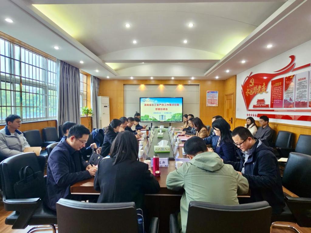3月31日下午,湖南省总工会产改工作重点任务部署协调会在伟德金盆岭校区经管大楼会议室召开。省总工会党组成员、省教育工会主席刘湘凌,省总工会相关部门负责人,校党委副书记、工会主席方琼,校工会、经管学院负责人参加会议,会议由方琼主持。