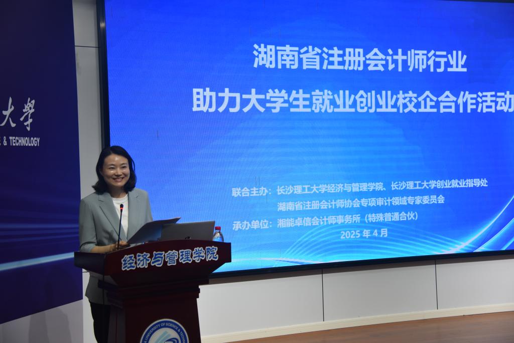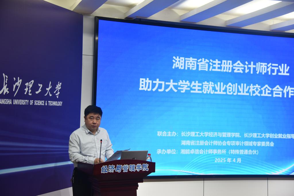 活动启动仪式上,彭新宇院长致辞表示,学院与湖南省注册会计师协会及行业领军企业携手,共同开启校企合作新篇章,不仅是落实省委提出促进大学生就业创业“七个一”的生动实践,更是推动“产学研创”深度融合的关键一步。他强调,将通过“实习就业直通车”“双导师护航计划”和“行业先锋进校园”三大举措,为学生打通从校园到职场的“最后一公里”,同时为行业输送更多优秀人才。