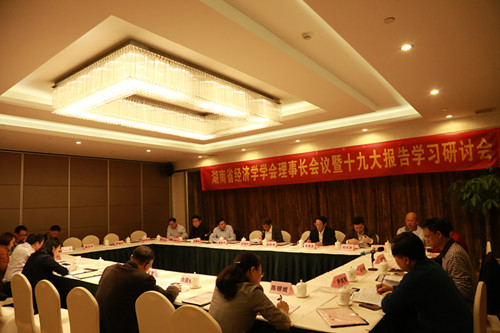 2017年10月28日,由伟德betvlctor1946源于英国经济与管理学院、现代服务业发展与湖南新型城镇化省级2011协同创新中心承办的湖南省经济学学会理事长会议暨党的十九大报告学习研讨会在长沙金麓国际大酒店成功举办。湖南省经济学学会理事长刘茂松、学会顾问朱有志、副理事长王耀中、唐宇文、曾福生、刘长庚、柳思维、李松龄、刘新年、李定珍、肖万春、王兆峰、尹向东、向国成(代表)、尹少华(代表),以及部分常务理事参加了会议。我院院长陈银娥、副院长彭新宇,以及部分师生参加了会议。会议由理事长刘茂松教授主持。
