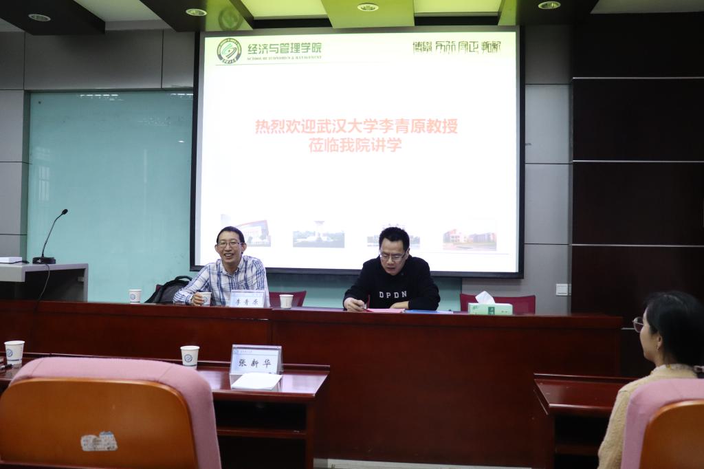 2019年5月16日15:00,教育部青年长江学者、中组部青年拔尖人才,武汉大学经济管理学院副院长李青原教授应邀来我院做学术讲座,讲座在金盆岭校区七教212举行,主题为“交叉学科的国际会计研究”。本次讲座由张新华副院长主持,王治副院长和经管学院部分老师及研究生参加了本次讲座。