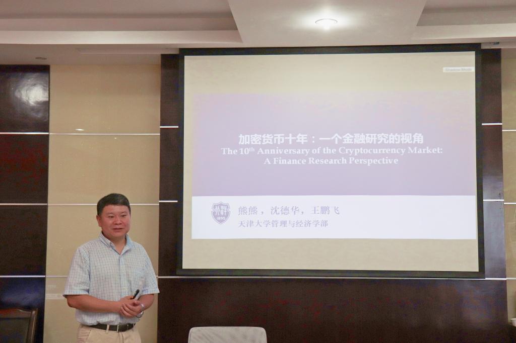 2019年9月7日上午9:00,天津大学管理与经济学部学院熊熊教授应邀来我院做学术讲座。本次讲座以“加密货币十年---一个金融研究的视角”为主题,在金盆岭校区7教204开展,由张新华副院长主持,经管学院部分老师和研究生共40余人参加了本次讲座。
