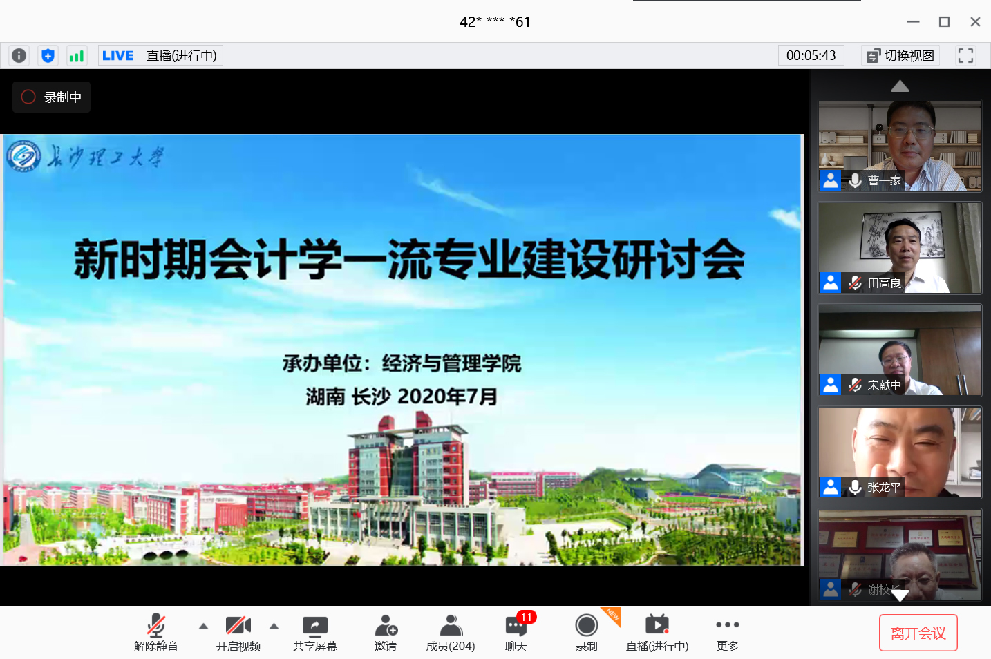 为深入贯彻《教育部办公厅关于实施一流本科专业建设“双万计划”的通知》精神,推进伟德会计学国家级一流本科专业建设,7月12日下午,学院组织承办了新时期会计学一流专业建设研讨会,研讨会采取线上线下相结合的形式进行。参加会议的有伟德betvlctor1946源于英国校长曹一家、副校长叶泽、教务处处长刘朝晖、学院院长陈银娥、院党委书记王宏、全体院领导,包括南开大学、中山大学、湖南大学、中南大学、南京航空航天大学、北京工商大学、对外经贸大学在内的百余所高校近千名师生通过腾讯会议或直播平台参加本次研讨会。学院财会系、信管系全体教师在金盆岭校区7教212教室现场参会。会议由副校长叶泽主持。