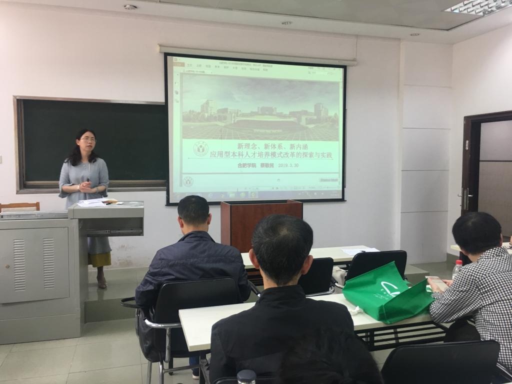 会议第二项议程为全系学习合肥学院国家级教学成果奖培育及诞生过程。合肥学院教授蔡敬民等主持的“新建-新兴-新型:突破同质同构 推进八个转变 建设应用型大学的探索实践”获2018年国家级教学成果一等奖,这是该校继2009年获得国家级教学成果二等奖、2014年获得国家级教学成果一等奖之后第三次获得该奖项。合肥学院历经十五年应用型高等教育理论与实践的不断探索,通过办学定位、专业结构、培养模式、课程体系、教学过程、师资队伍、资源保障和质量评价等系统改革,形成“八个转变”的全方位改革实践经验,为高校人才培养结构性改革提供了新的思路。