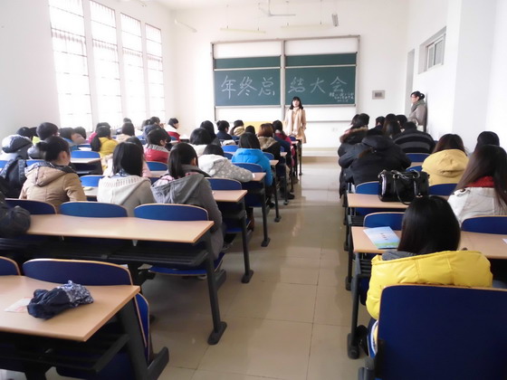 为总结过去,展望未来,2013年12月25日中午12时30分,经管学院朋辈心理工作年终总结大会在文科楼D101教室召开。伟德心理健康教育中心熊恋老师、我院心理辅导员李丽兰老师以及我院朋辈心理部、各班心理委员等共计80余人出席了此次大会。