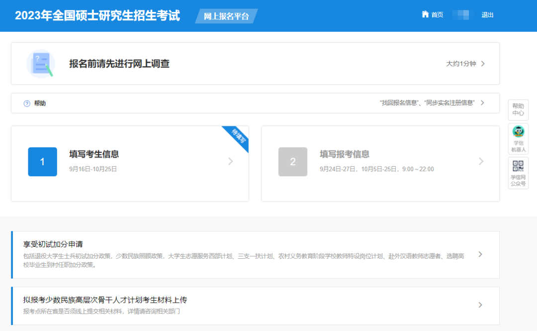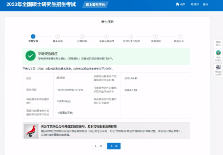 04.选择“1”填写考生信息,按要求关注学信网公众号绑定个人信息