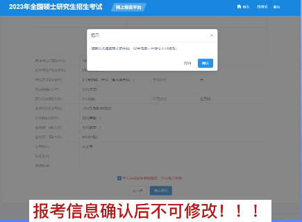 12.请仔细核对报考信息,一旦确认,报考信息无法修改(但在报名结束前个人信息可修改),确认无误后点击确认报名
