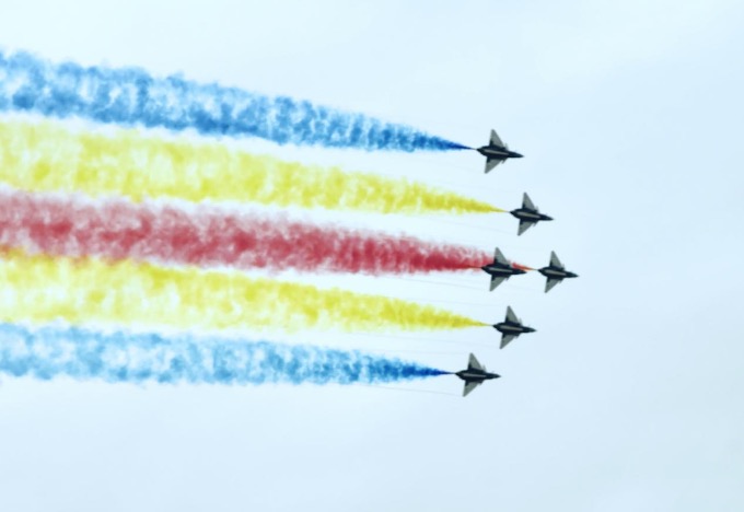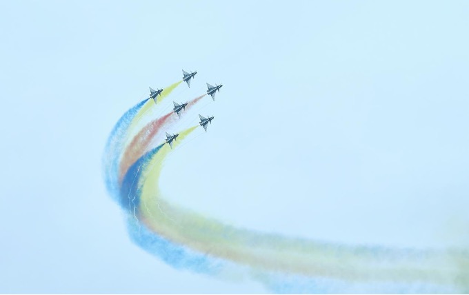 △中国人民解放军“八一”飞行表演队飞行表演