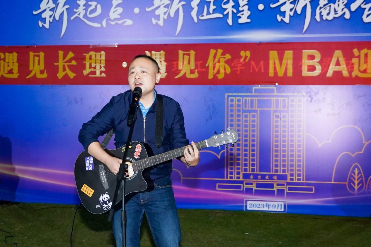 2023级学员蒋克恨倾情献上吉他弹唱《New Boy》,浑厚有力的男声,诉说他在长理的故事,他对长理的感情。走出长理,再回到长理,初心不改,永远都是长理人;2023级学员刘琪钧、唐航舟带来古筝二胡合奏《沧海一声笑》,气势如虹,展现新学员们意气风发,博得掌声不断;2023级学员聂佩弦尤克里里弹唱《情非得已》,温柔的歌声给晚会增加一份独特柔情。回应学长学姐的的欢迎,并祝伟德betvlctor1946源于英国MBA明天会更好!