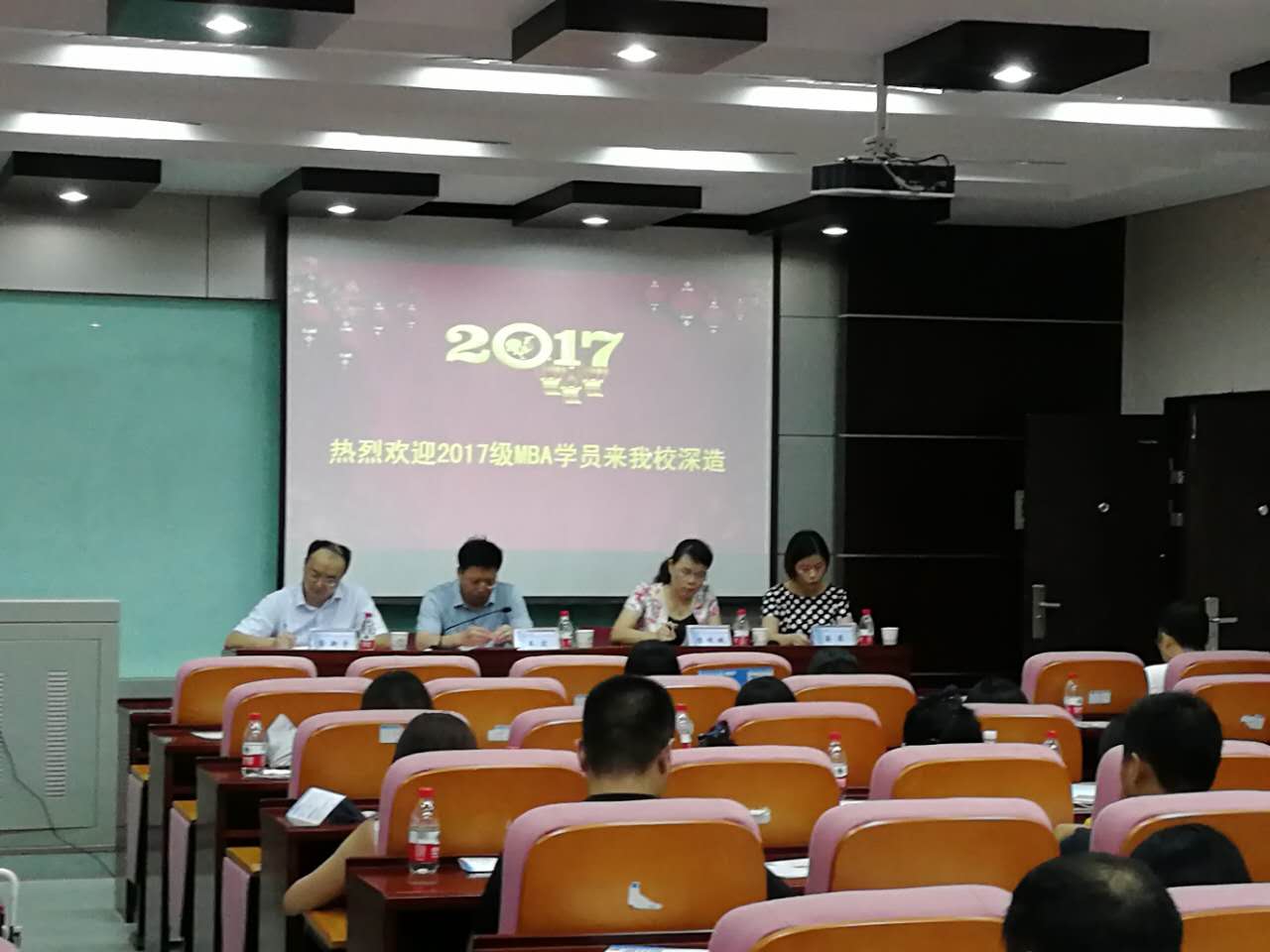9月10日下午14:30分,伟德betvlctor1946源于英国2017级MBA新生开学典礼在金盆岭校区7教212室隆重举行。研究生院副院长蒋菲、经济与管理学院院长陈银娥,党委书记王宏,副院长彭新宇出席典礼仪式。典礼由王宏书记主持。