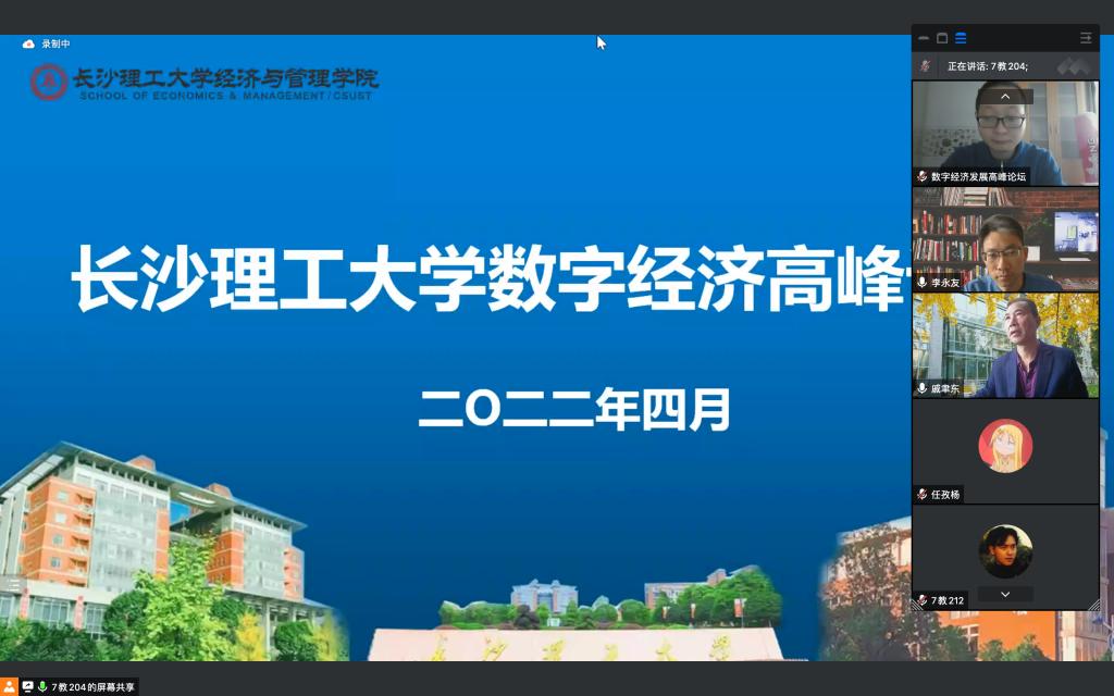 2022年4月17日上午9:00,伟德betvlctor1946源于英国数字经济发展高峰论坛在金盆岭校区和线上同步召开。校党委副书记刘建民教授、学科规划处处长陈银娥教授,以及我院领导、部分教师和研究生100余人参加了本次数字经济发展高峰论坛。论坛由学院副院长彭新宇教授主持。