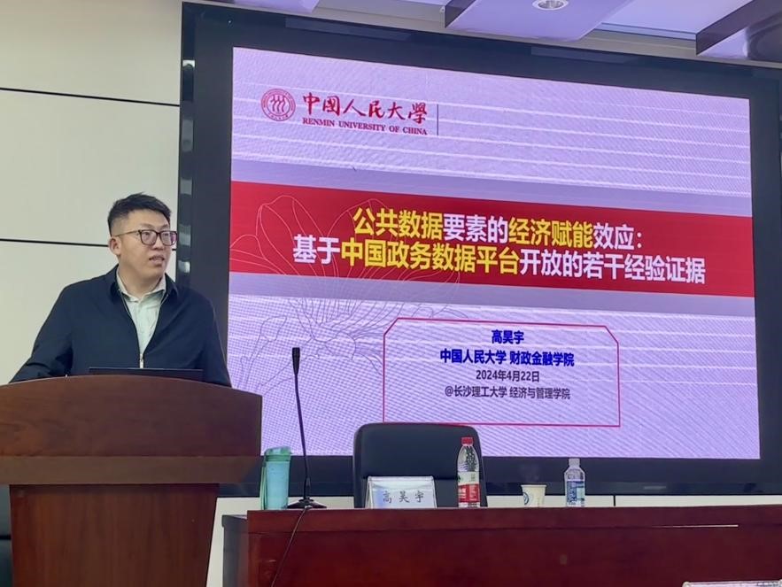 2024年4月22日在金盆岭校区7教212,中国人民大学财政金融学院高昊宇教授开讲我院“金岭学术大讲坛”第5期。讲座由经济与管理学院副院长尹筑嘉主持,工商管理学、应用经济学以及金融学的近80名师生参加。